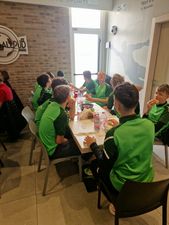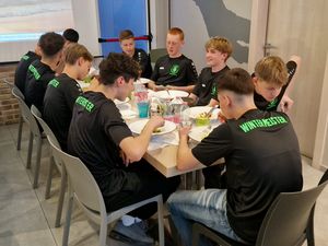 Nach dem ersten Training wartete ein Abendessen mit Pasta, Hauptgang und Dessert auf uns. Besonders schön war auch, dass wir das Abendessen in einer Sportsbar, die mit dem Hotel zusammenarbeitet, einnehmen konnten. Im Umfeld mit signierten Trikots, unter anderem von Maradona, und WM Bällen fühlten wir den Geist des Fussballs.