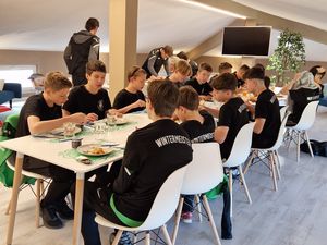 Wie schon im letzten Jahr wurde hart trainiert. Tägliche Einheiten auf dem Platz, Laufeinheiten und Übungen zur Technik und Taktik standen auf dem Programm. Das intensive Training hat uns nicht nur sportlich weitergebracht, sondern auch als Team noch stärker zusammengeschweisst. Unser Vize-Präsident Massimo kam ebenfalls kurz zu einem Training zu Besuch und konnte unser Teamspirit bei dem Mittagessen spüren, bevor er seine Rückreise fortgesetzt hatte.